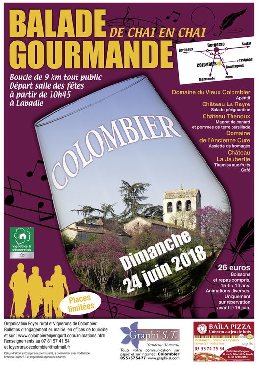 Les vignerons de Colombier vous proposent un repas au fil des chais (parcours facile de 9 km) accompagné des vins de chaque domaine.