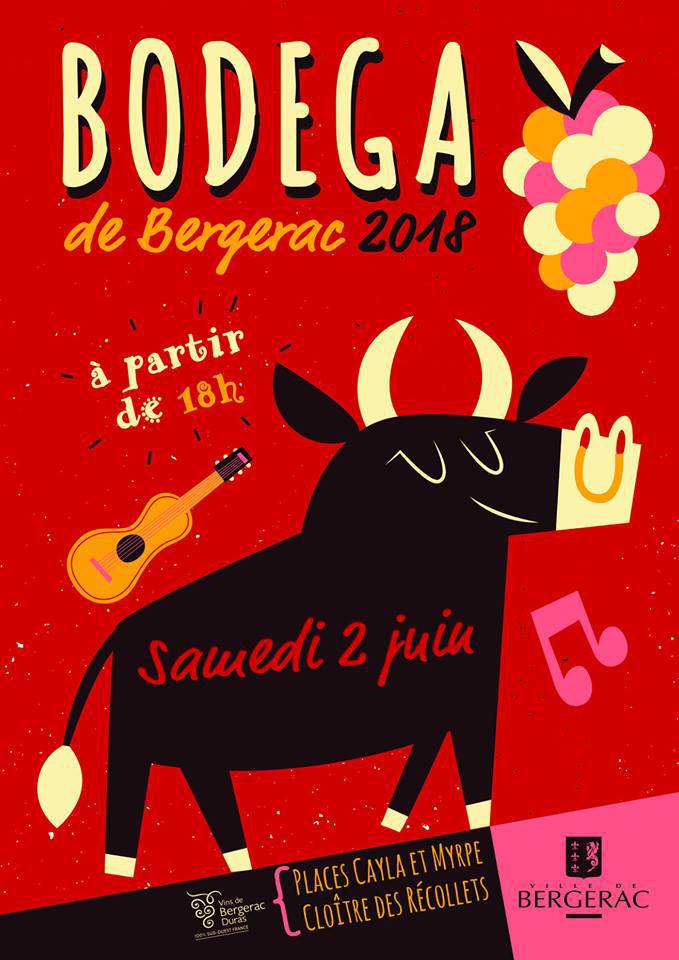 La Bodega revient à Bergerac le samedi 2 juin 2018 à partir de 18h place Cayla, place de la Mirpe et Maison des Vins (Cloître des Récollets). Cette Bodega est ouverte à toutes les associations Bergeracoises