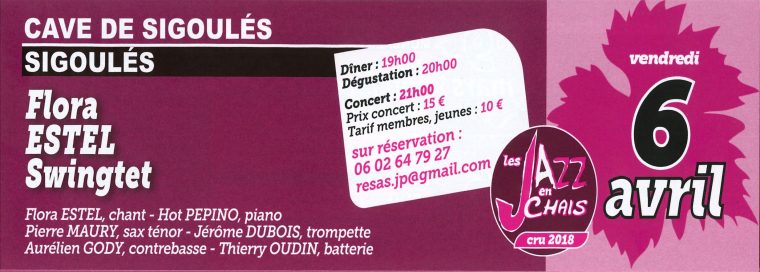 Jazz en Chais revient chez les Vignerons de Sigoulès le Vendredi 6 avril 2018, à la Cave de Sigoulès.