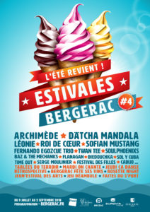 Les tablées du terroir sont organisées dans le cadre des ESTIVALES 2018 : lieu de détente et de découvertes gastronomiques et musicales. La grande scène à ciel ouvert recevra des artistes de grande qualité, et de notoriété, qui rythmeront vos soirées de sons aux influences pop, rock, jazzy, saoul, cubaines… Plus d’infos sur le site de la ville de Bergerac.