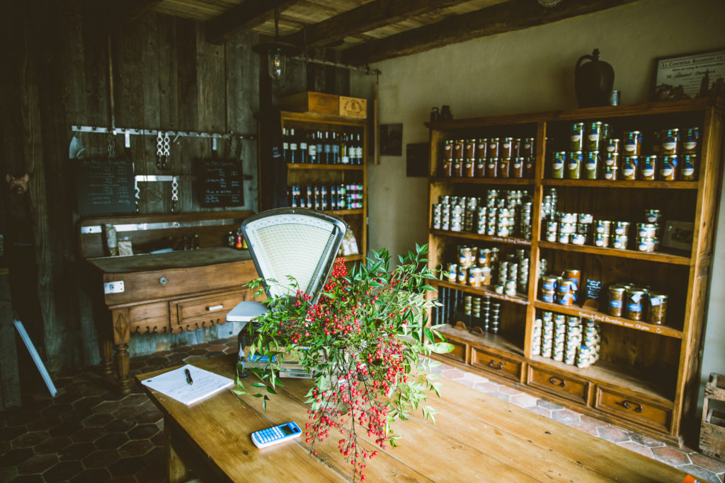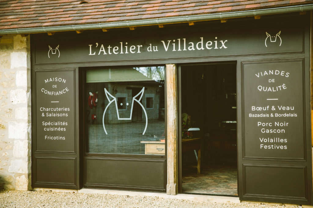 Le couple transforme lui-même la production dans un laboratoire installé près des étables : « Nous avons bénéficié de la transmission d’un vrai savoir-faire, qui se perd », regrette Arnaud. Sur les étagères à l’ancienne de la boutique, s’alignent les bocaux avec des créations spéciales comme la « sauce Villadeix » (un mélange de trois viandes) et des classiques comme l’enchaud du Périgord. Cette gamme de conserves artisanales se rajoute à la vente de salaisons et de viandes fraîches. Sont proposées aussi quelques jolies cuvées, trouvailles des propriétaires lors de leurs escapades dans le vignoble de Bergerac Duras, où l’engagement des vignerons pour la biodiversité les a séduits.