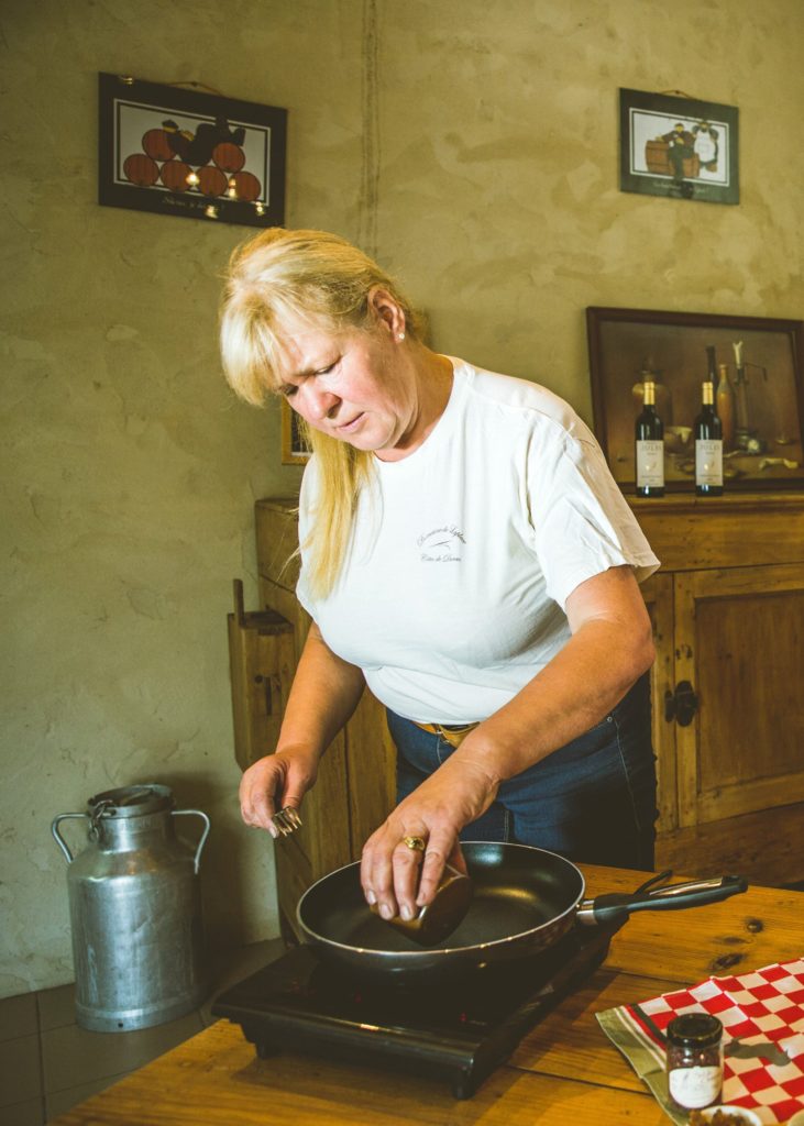 Marianne Carmelli – Depuis 1924. Il a connu 5 générations de Carmelli ! C’est une ferme traditionnelle en polyculture élevage typique du Pays de Duras avec de la vigne, des céréales et un élevage de Blondes d’Aquitaine. Mes parents, d’origine néerlandaise, étaient éleveurs eux aussi. Puis, j’ai découvert la viticulture en épousant un vigneron ; et depuis, j’ai la passion du métier. Quand je suis arrivée, le domaine ne faisait que du vin en vrac. Et puis, en 2001, nous avons commencé à développer la bouteille, et petit à petit l’accueil à la propriété. J’aime le contact avec les gens, leur expliquer notre métier, les accueillir en toute simplicité au domaine.