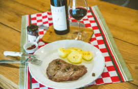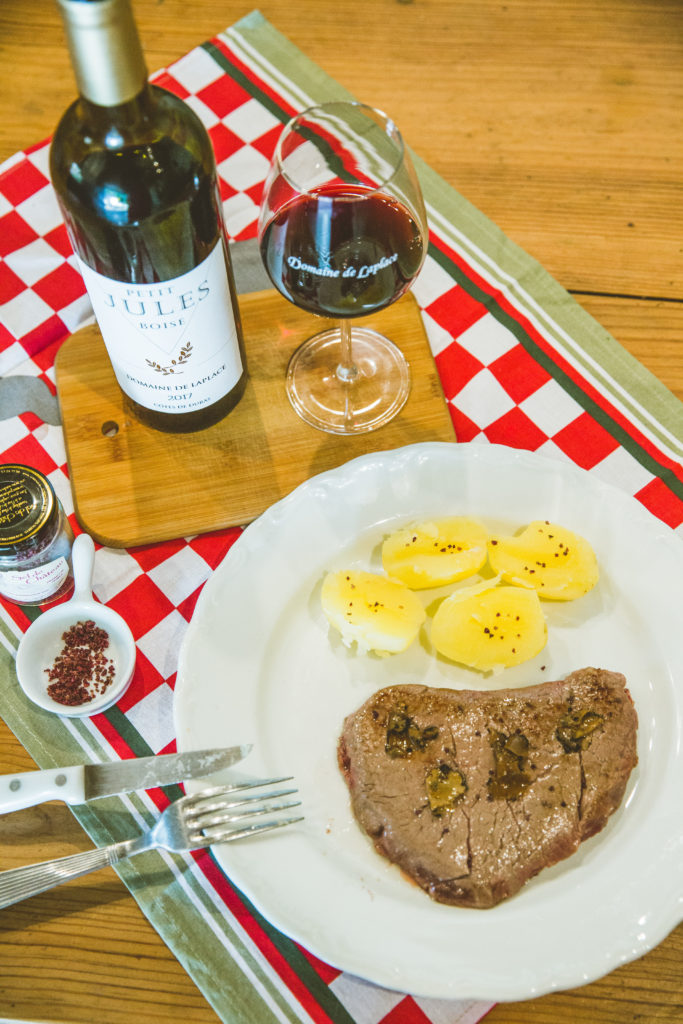 Marianne Carmelli – Je souhaitais travailler sur une recette simple à réaliser et qui mettrait en valeur notre viande et notre cuvée Petit Jules. J’avais pensé au sel de vin, qui exhauste à merveille le goût de la viande rouge tout en apportant une note originale. Quand Laurent m’a proposé le carpaccio de truffe qu’il venait juste de référencer, je me suis dit que ce serait la parfaite petite touche festive qui viendrait sublimer le tournedos sans le dénaturer. Et ça fonctionne.