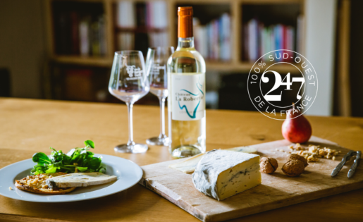 Pour réaliser cette recette et en accompagner la dégustation, Juliette propose sa cuvée bio Château La Robertie en AOP Côtes de Bergerac moelleux. Légèrement sucrée et toute en fraîcheur, ses arômes de poire, fruits exotiques, agrumes et fruits secs soulignent à la perfection cette belle assiette de fromage.