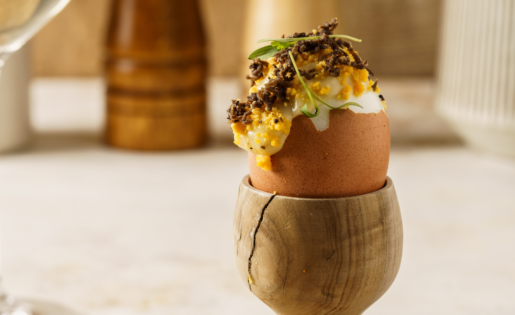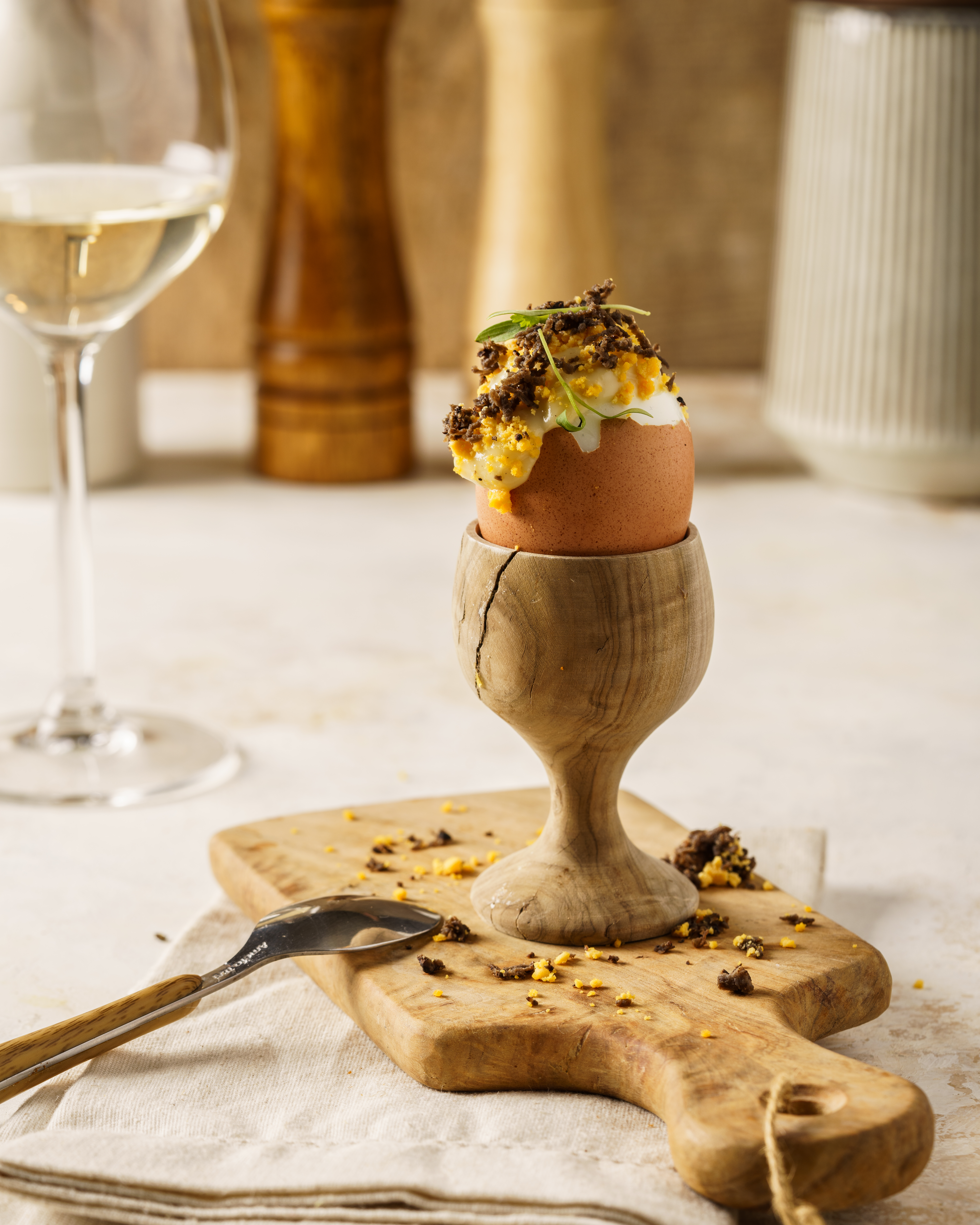 Cette superbe cuvée offrant une belle ampleur sur une déclinaison de notes de fruits secs formera le couple parfait avec les saveurs délicates de l’œuf. La vivacité du vin donnera la réplique à la texture de la mayonnaise aux notes truffées.