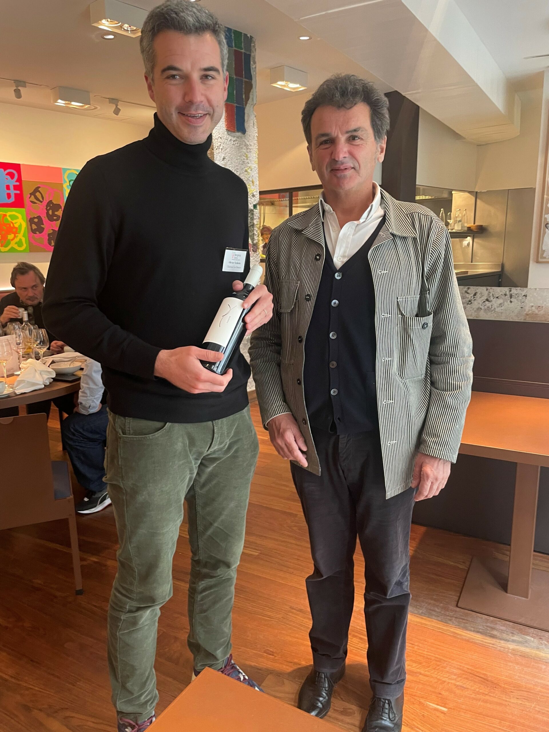 Olivier Verhelst, à gauche, du Château Les Donats et Pierre-Yves Chupin lors d’un déjeuner « Vins de Bergerac et Duras » à Paris