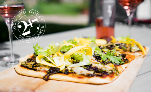 La pizza aux légumes du soleil de Céline et Gaëlle, c’est de la générosité et de la gourmandise à partager. Taux d’affinité avec le Bergerac rosé Initiale G du Domaine de Perreau : 247% !