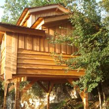 Hélène propose en effet de partager sa passion ainsi… et par le biais de deux hébergements insolites qui accueillent depuis le mois d’août les hôtes de passage. Deux cabanes perchées, l’une dans un chêne centenaire (La Cabane du Chêne), l’autre surplombant un ancien lavoir alimenté par une source sortant de la roche (La Cabane de la Source) proposant un panorama à couper le souffle.
