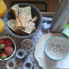De la terrasse de ces cabanes, vignes, champs, arbres et haies… Un bain de nature, un bol d’air et, avant de dormir, après une soirée éclairée à la bougie, une infusion pour convoquer Morphée…