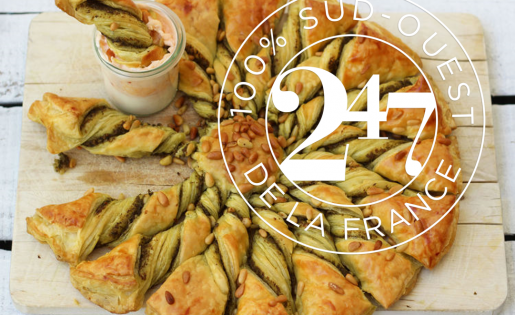 Étalez un rond de pâte feuilletée sur la plaque du four garnie de papier sulfurisé.