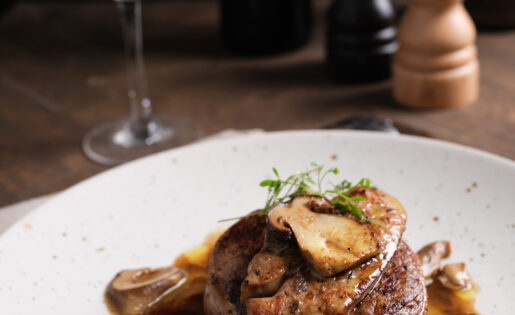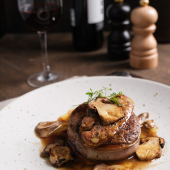 Dans une assiette, déposez votre tournedos puis, par-dessus votre tranche de foie gras poêlée.