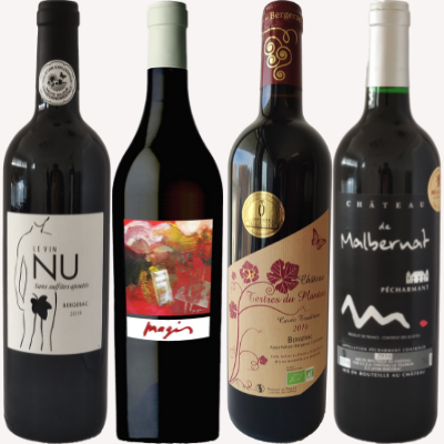 Les Vignerons de Sigoulès osent le Vin Nu, un Bergerac sans sulfites ajoutés, vif, fruité, aux arômes d’épices. Grâce à son vignoble ensoleillé, le Château de Malbernat est un Pécharmant charmeur : souple et long en bouche, il marie à merveille le fruit mûr et les tanins délicats. Également à l’honneur, le Magis, un Bergerac produit par Julien de Savignac, se révèle… ma-gis-tral ! Son nez de fruits rouges et de cassis laisse place à des notes de griotte et de chocolat à la dégustation. Enfin, à l’image de son étiquette, la Cuvée Tradition du Château Tertres du Plantou, un Bergerac des Vignobles Lajonie, complète avec élégance et raffinement cet assortiment.