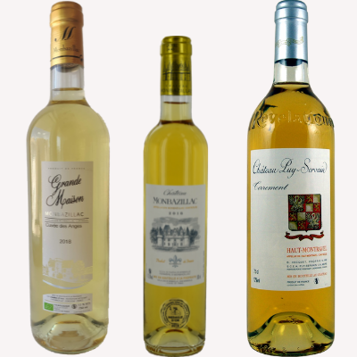 Le Château Monbazillac, de l’appellation éponyme, offre une onctuosité et une douceur sans égales. Pour compléter la palette de saveurs, la Cuvée Terrement du Château Puy-Servain en Haut-Montravel séduira vos papilles par des sensations contrastées de fruits frais et fruits confits.